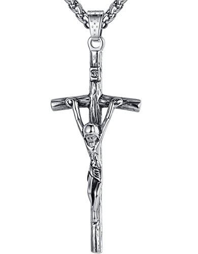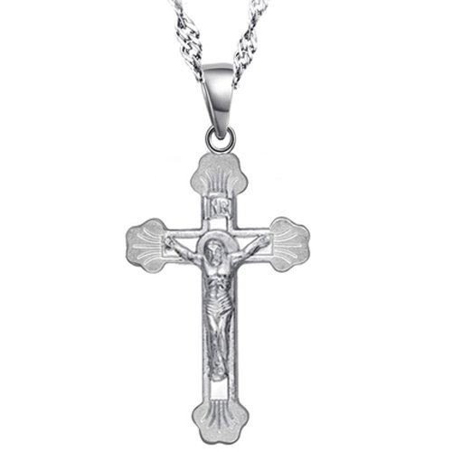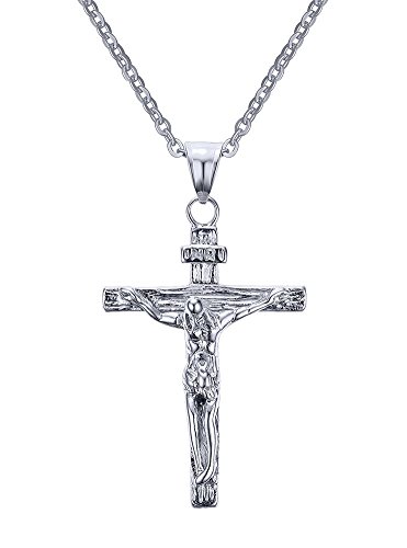 Stainless Steel Jesus Crucifix Cross Necklace Pendant for Men Women Christian with Chain Silver
