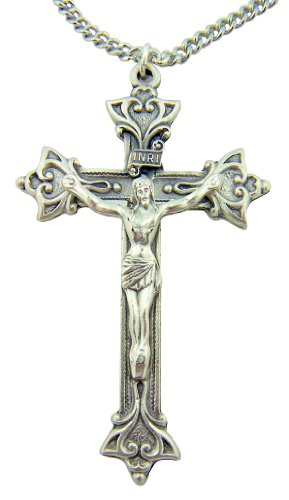 Silver Tone 2-Inch Antique Style INRI Flared Jesus Christ Cross Crucifix Medal