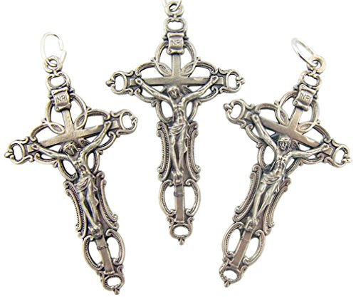 Lot of 3 Silver Tone 2 1/8 Inch Flower Cross Crucifix