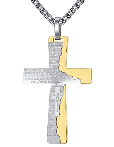 Men’s Stainless Steel Lord’s Prayer Jesus Christ Crucifix Cross Pendant Necklace 24″ Chain, ggp141ji