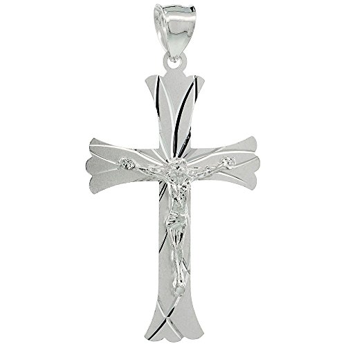 Sterling Silver Crucifix Pendant w/ Cross Patonce, 1 3/4 inch tall