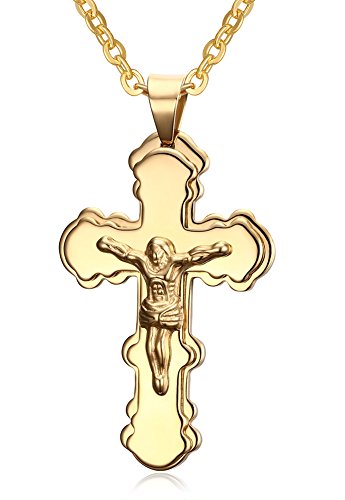 Stainless Steel Jesus Crucifix Cross Necklace Pendant for Men Women Christian with Chain Gold