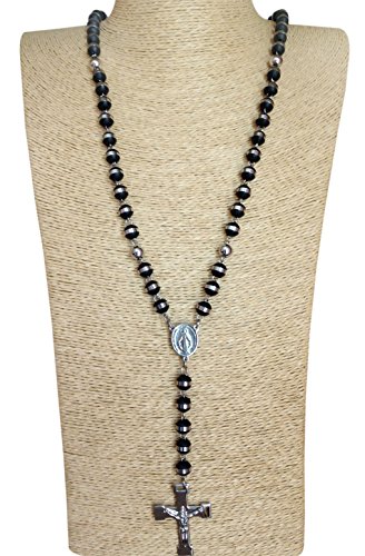 Men Rosary Necklace Stainless Steel Crucifix Pendant & Vintage Chain 8mm Black Bead Gn543s