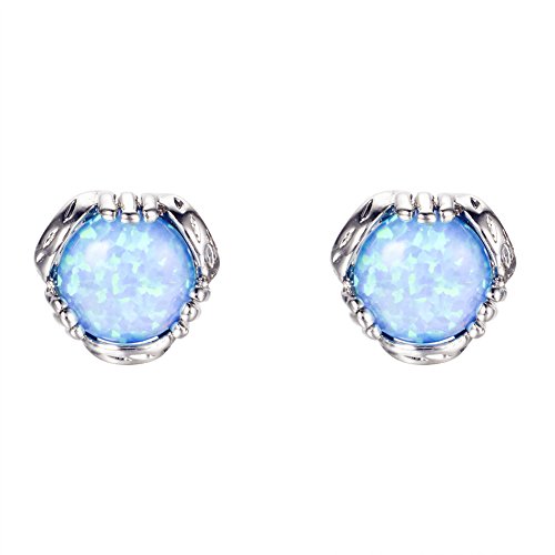 Bamos Jewelry 7.6MM White Gold Blue Fire Opal Best Friend Wedding Stud Earrings for Womens and Girls