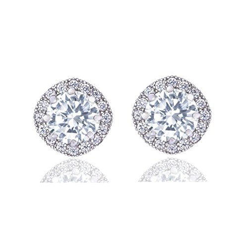 Cuccu 9MM 18k White Gold Plated Cubic Zirconia Flower Earrings for Women Girls Jewelry Halo Stud Earrings