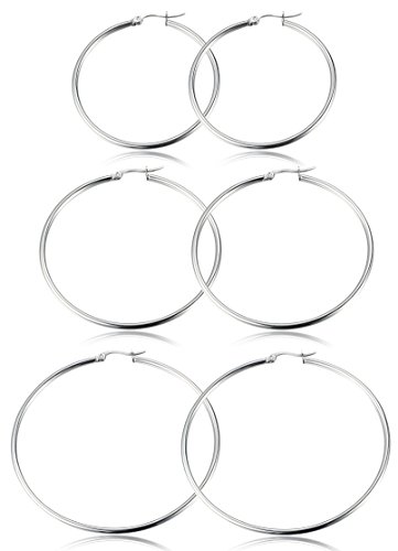 Jstyle Stainless Steel Hoop Earrings for Women Cool Ear Piercings 40-60MM 3 Pairs a Set