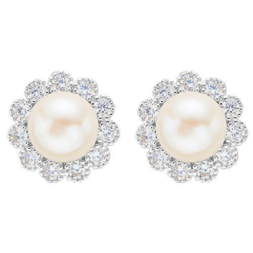 EVER FAITH® 925 Sterling Silver 8MM AAA Freshwater Cultured Pearl CZ Elegant Sunflower Stud Earrings Clear