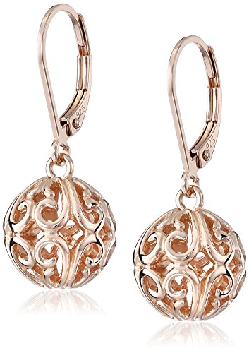 18K Rose Gold Plated Sterling Silver Filigree Ball Dangle Earrings