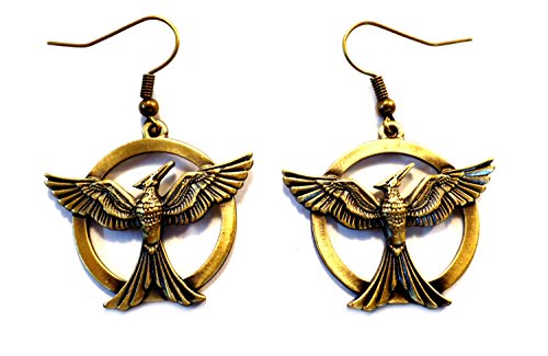 Gold-tone Hunger Games Mockingjay Movie/TV Theme Charm Dangle Earrings W/Gift Box