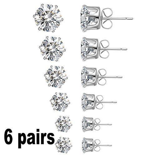 Colov Cubic Zirconia Stud Earring – Stainless Steel Ear Ring 6 Pairs