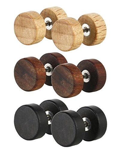 Tanyoyo 8mm Wood Cheater Fake Ear Plugs Gauges Illusion Screw Stud Earrings 3pair