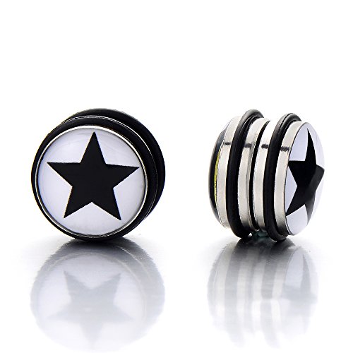 2pcs 8mm Magnetic Black Circle Star Stud Earrings for Men Boys, Non-piercing Clip on Fake Ear Plugs