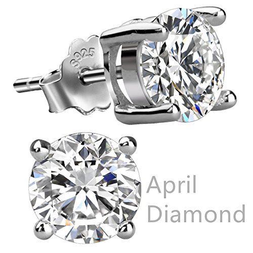 Freeman Jewels Sterling Silver Round Cubic Zirconia Diamond Birthstone Stud Earrings for Women