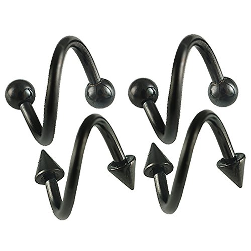 16g 16 gauge (1.2mm), 5/16″ Inch (8mm) long – Black Anodized surgical steel eyebrow lip bars ear tragus Twist rings earrings spiral Barbells BEPY – Pierced Body Piercing Jewelry- Set of 4