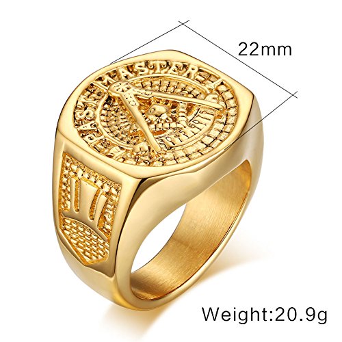 Cheo Rish Mens Popular 18K Gold Plating Freemason Rings