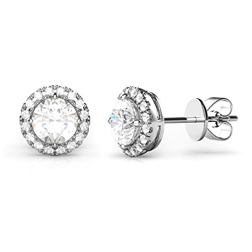 925 Sterling Silver Round CZ Cubic Zirconia Halo Earrings