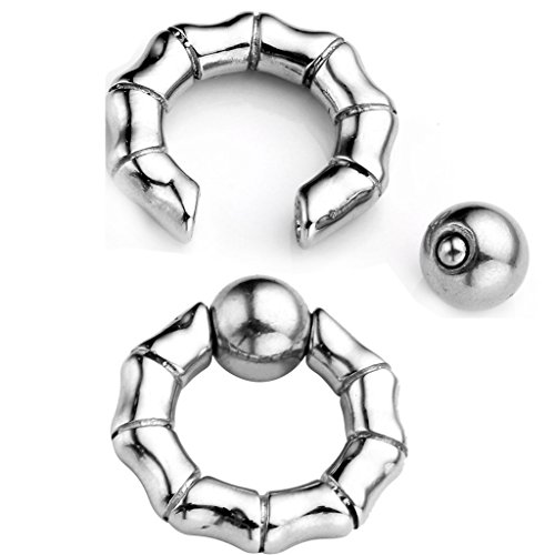 PiercingJ 2pcs 6G Silver Stainless Steel Skeleton Bone Captive Bead Ring Nose Ring Piercing Plug Ear Expander Stretcher Earring