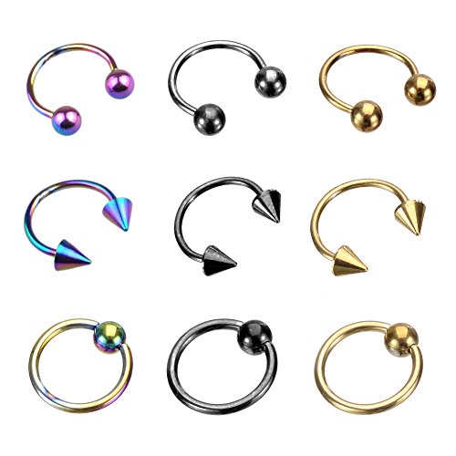 18 Pieces Captive Bead Ring BCR and Horseshoe Circular Barbell CBR (Nose, Ear) 16 Gauge 5/16″