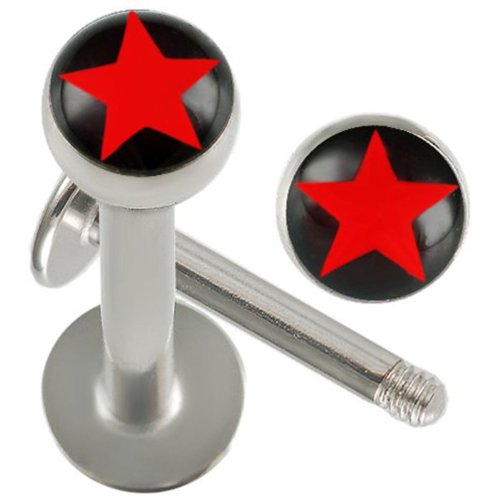 14g 14 gauge (1.6mm), 3/8″ Inches (10mm) long – 316L Surgical Stainless Steel Lip Bar Labret Ring Monroe Ear Tragus Stud Bars Earrings Ball 4mm with Star Logo – Pierced Body Piercing Jewelry Jewellery – Set of 2 AHGN