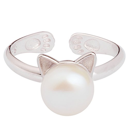 S925 Cat Ear Ring Fresh Water Pearl Cat Ring S925 Sterling Silver Open Ring