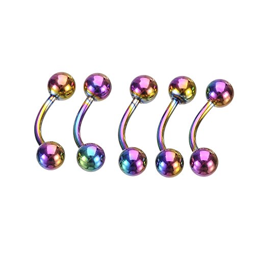 18g 18 Gauge (1mm), 5/16″ Inches (8mm) Long – Anodized Surgical Steel Eyebrow Lip Bars Ear Tragus Rings Earrings Curved Curve Barbell Bar 4mm Ball Rainbow – Pierced Body Piercing Jewelry Jewellery – Set of 5
