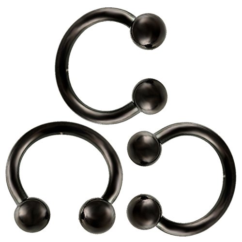 14g 14 gauge 1.6mm , 3/8 inch 10mm long – Black color anodized surgical steel circular barbell bulk eyebrow bar lip tragus horseshoe rings earrings lot BETN- Pierced Jewelry Body Piercing Jewellery- Set of 3