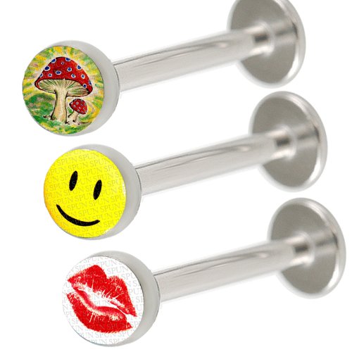 16g 16 gauge (1.2mm), 1/2″ Inches (12mm) long – Stainless Steel Lip Bar Labret Ring Monroe Ear Tragus Stud Earrings Hand Painted balls HP2 ANNN – Pierced Jewelry Body Piercing Jewellery- Set of 2