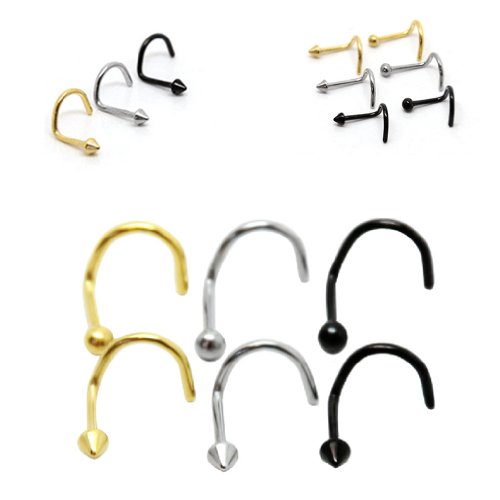 Thenice 12 Pcs 16 Gauge 1.2 Mm Nose Stud Body Piercing Hooks Earrings Ear Rings