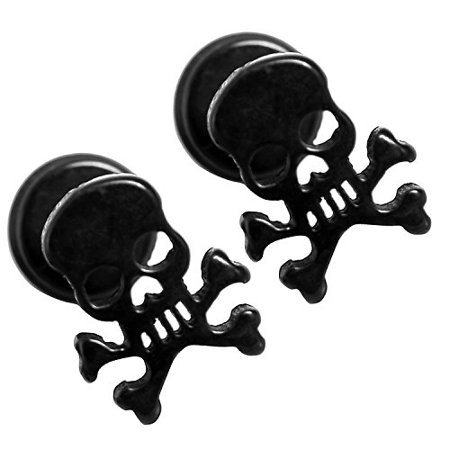 Bad-boy 316l Stainless Steel Post with Black Skull Cut Stud Earrings Ear Ring 2pairs