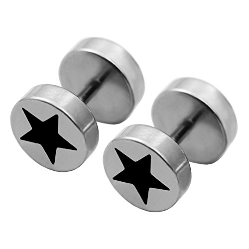 Bad-boy 316l Stainless Steel Post with Pentagram Cut Stud Earrings Ear Ring 2pairs
