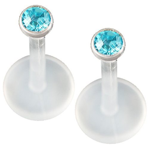 16g 16 gauge (1.2mm), 5/16″ Inches (8mm) long – Internally Threaded Bioplast Lip Bar Labret Ring Monroe Ear Tragus Stud Bars Earrings Balls 2mm with Swarovski Crystal Jeweled Aquamarine – Pierced Body Piercing Jewelry Jewellery – Set of 2 AGBB