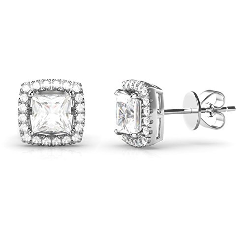 925 Sterling Silver Princess Cut CZ Cubic Zirconia Halo Earrings