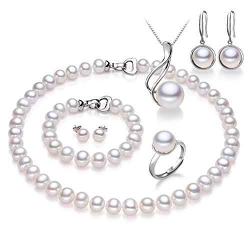 Audrey December Chinese Freshwater Cultured Pearl Necklace,Bracelet,Earbob,Ear Studs, Pendant and Ring Set