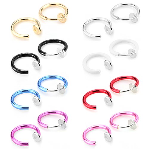 8 Pairs Value Pack Color Set Fake Clip On Earrings, Non Piercing Hoop Earrings, Fake Body Jewelry, Hypoallergenic
