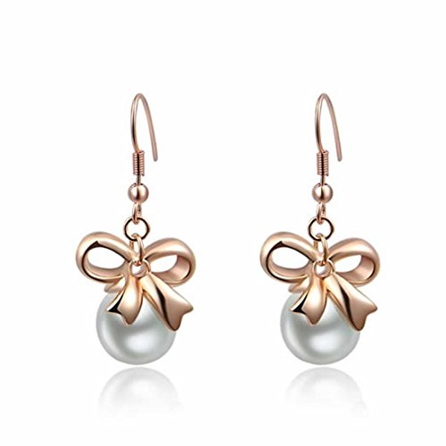 Women’s Rose Gold Earrings Jewelry Stud Dangle Bow Pearl Ear-Rings