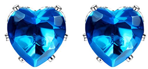 Epinki Women’s 18K White Gold Plated Jewelry Stud Earrings Blue CZ Hearts Shape Ear Ring