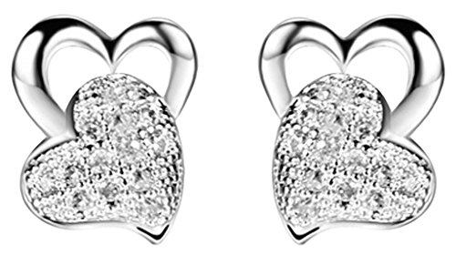 Epinki Women’s 18K White Gold Plated Jewelry Stud Earrings Ear Rings Double Hearts Hollow White CZ