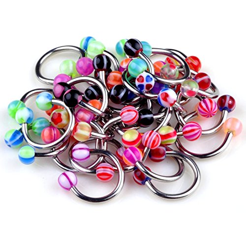 Yantu Unisex 20pcs 18g Ball Circulars Horseshoes Eyebrow Lip Belly Rings Body Piercing Jewelry