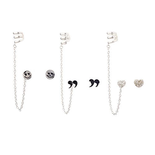 Lux Accessories Emoji Happy Heart Smile Quote Pave Heart Multiple Ear Cuff