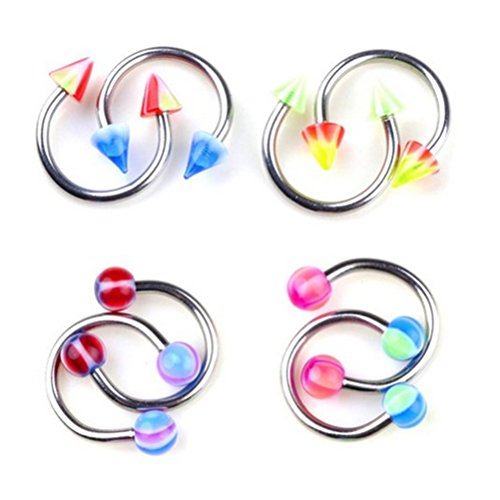 Kathy Store INC 12 Pcs Lot Rainbow 16g 16 Gauge (1.2mm), 5/16 Inches 8mm Long – Surgical Steel Eyebrow Lip Bars Ear Tragus Twist Earring Rings Spiral Barbells