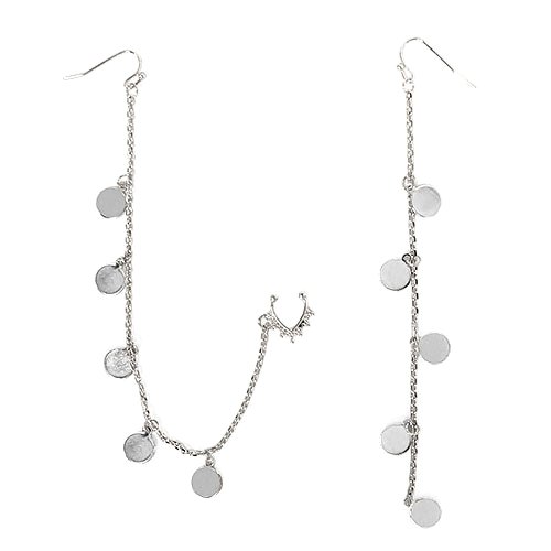 Pierced Hook Earring To Clip On Nose Hoop Ring w/ Dangling Round Accent Chain in Gold-Tone
