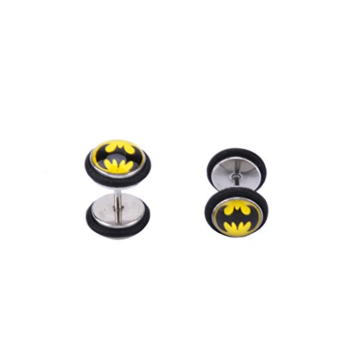 IPINK 2pcs Bat Batman Disc Plug Fake Cheater Earring Ear Ring Stud Barbell Plugs