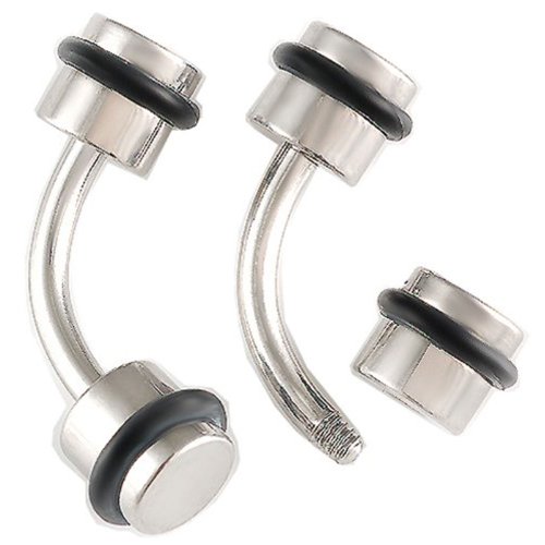 14g 14 gauge 1.6mm~3/8 inches 10mm 316L Surgical Steel drum 5mm with black O-rings curved barbell eyebrow lip bar tragus jewellery ear ring earring – Pierced Body Piercing Jewelry – Set of 2 AHDL