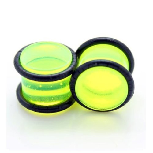 4G Neon Green Acrylic UV Double O-Ring Ear Plugs Gauges (4G – 5mm) Sold as a Pair