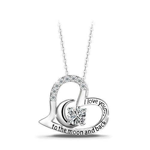 925 Sterling Silver Jewelry “I Love You To The Moon and Back” Love Heart Pendant Necklace
