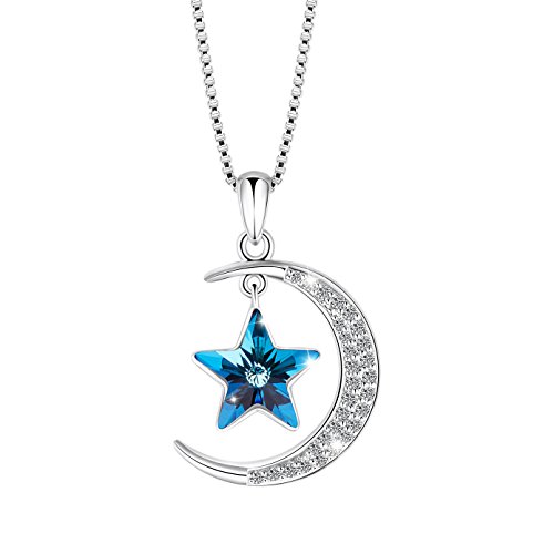SIVERY “Moon and Star” Fashion Jewelry Pendant Necklace, Made with Swarovski Crystals, Christmas Gift for Women