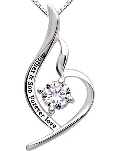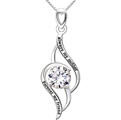 ALOV Jewelry Sterling Silver “always my mother Forever my friend” Love Cubic Zirconia Pendant Necklace