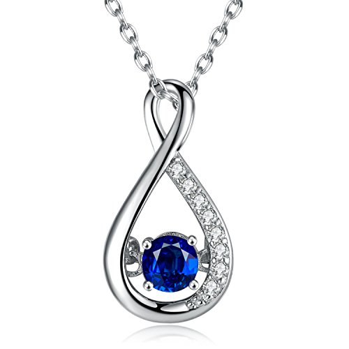 Caperci Sterling Silver Created Blue Sapphire Diamond Accent Infinity Pendant Necklace for Women, 18”