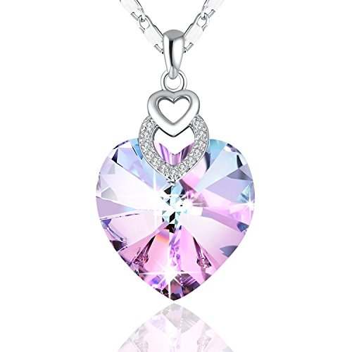 PLATO H Brave Heart Pendant Necklace with Swarovski Crystal Christmas Gift for Her, Purple 18″