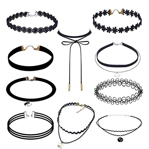 10pcs Velvet Choker Necklace, EveShine Lace Gothic Tattoo Leather Choker Necklace for Women Girls
